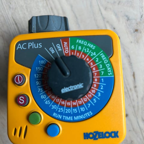 Knapt brukt vanningskontroller/timer med dag/natt funksjon og høy oppløsning på innstillinger selges.