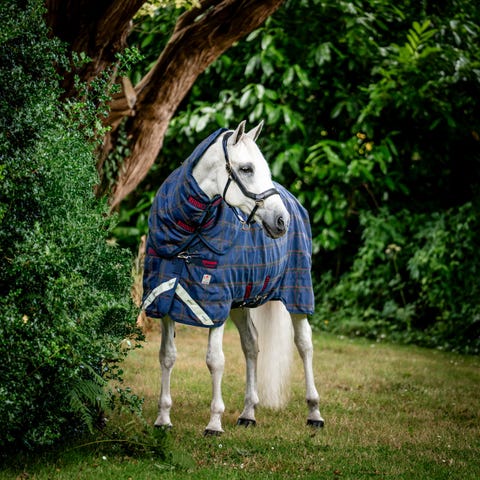 Super har ekstra sterkt yttermateriale laget av ekstremt slitesterk og robust 2520D polyester. Materialet er 250 % sterkere enn dekken i standardkvalitet. Dekkenet er utstyrt med linerfester, noe som gjør at det kan kombineres med Horseware-linere. Blankt nylonfôr reduserer risikoen for gnag. V-frontspenne, tre kryssgjorder og Horsewares patenterte benskjæring som gir god komfort og bevegelsesfrihet. Leveres komplett med avtakbart hals. 10 000 mm vannsøyle. Butikkpris kr 3300,-