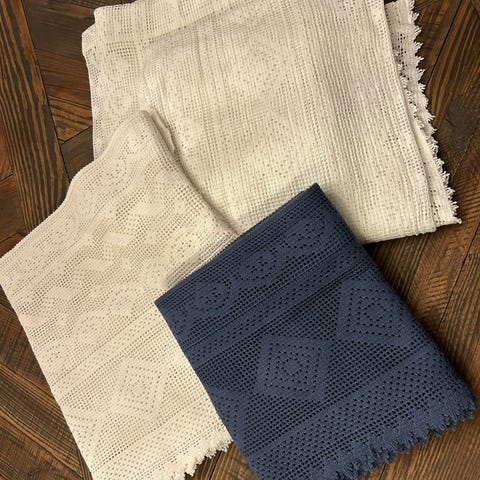3. Bomullsstoff med innfelt hekling. Noen reparasjoner må påregnes, evt. kan deler brukes i omsøm-prosjekter