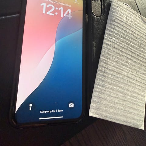 Skjermen er hel og alltid hatt beskyttelse,men den er tatt av nå, den er litt knust bak, har ikke vært noe problem da deksel er på. Batteri på 85%