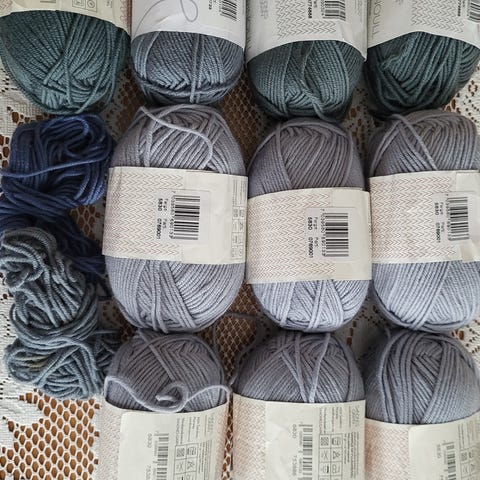 3 hele nøster i fargen lys gråblå.