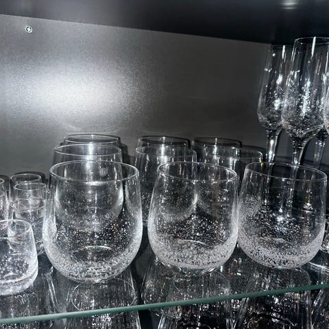 Stor skål i krystall, med stett. Litt eldre modell med vakkert tradisjonelt preget mønster. Høyde 19 cm. Bredde øverst 22 cm. Ukjent fabrikat. Utmerket stand, ingen skader.