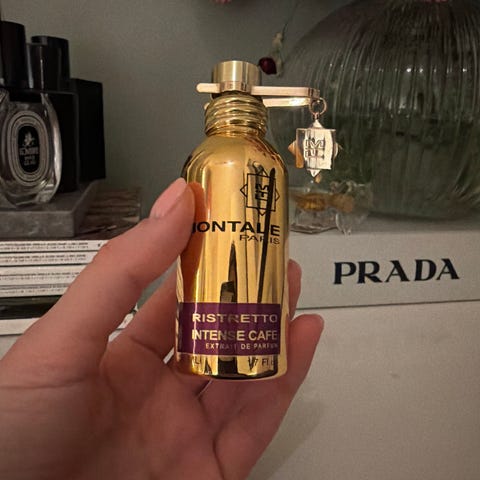 Montale Dark Vanilla parfyme med en flaske på 100 ml. Parfymen har en svart og lilla flaske med gullfargede detaljer. Den er brukt kanskje 10 ganger koster 1700/1800 kr ny men selges for 1400. Det er nesten ikke brukt noe så flasken er nesten like full som da jeg fikk den ny👍