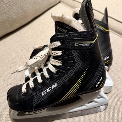 CCM Ishockeyskøyter for barn i størrelse 31. Skøytene er designet for ishockey og har en robust konstruksjon egnet for sporten.