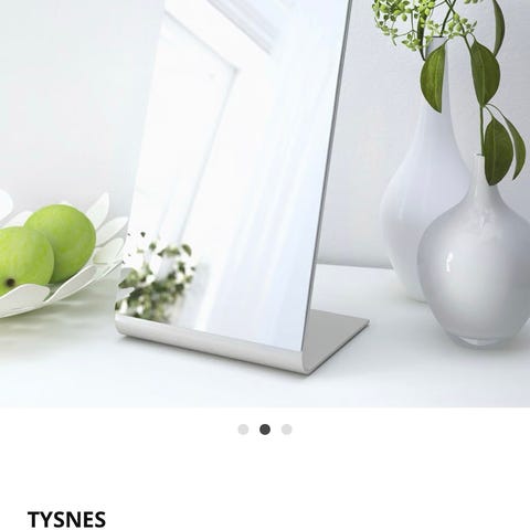 IKEA Songe speil med dekorativ ramme i sølvfarge. Speilet har et klassisk design som passer til ulike rom og innredningsstiler. Noen merker kan forekomme.