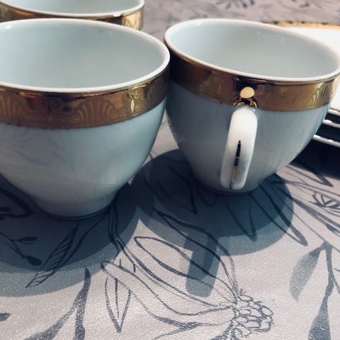 Greengate, tror det er Royal Copenhagen servise med blomsterdekor inkludert kopper, skåler, fløtekanne og sukkerskål. Produktet har et klassisk design med delikate blomsterdetaljer.
