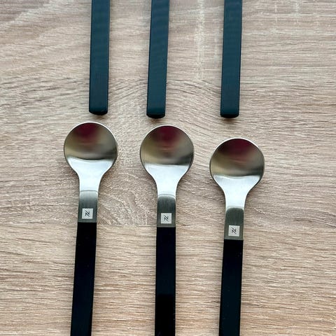 Pent brukt, tre stykker som er bittelitt brukt, eller så er alle andre ubrukt. Merk at to av koppene har litt større skjeer. Selges samlet. Nypris for paret er 329kr.