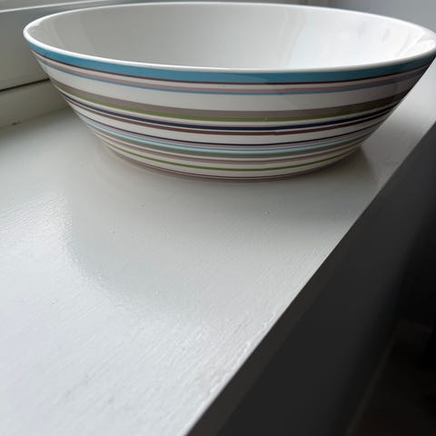 Det kjente, populære og fargerike serviset Origo fra Iittala er designet av Alfredo Häberli i 1999. Origo-serien fra Iittala med sin tidløse og lekre form er et perfekt eksempel på varig hverdagsdesign. Inspirasjonen til stripene fikk Alfredo Häberli fra regnbuen. Et flott hverdagsservise som er fint å mikse med serviset Teema fra Iittala.