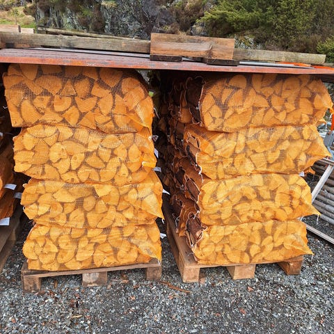 Søkeord: Ved, Vedsekk, Bjørk, Furu, Blandetved, Skog, Trær, Tre.