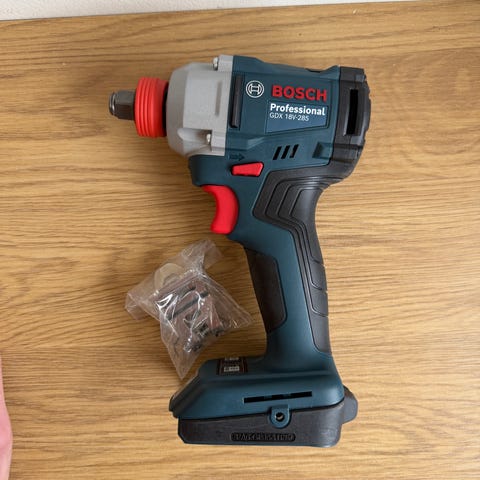 Muttertrekker Bosch GDS 18V-EC med 1/2" feste, drevet av 18V batteri. Verktøyet er blått og leveres med koffert , batteriet og bruksanvisning.
