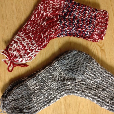 Sokkene er strikket med tykt og varmt Gjestal sports ragg 70% ull og 30% polyamid.