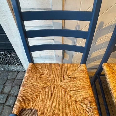Tonning og Stryn. Fire stoler (eik) klargjort for lakkering/maling. Oppgitt pris er pr. stk. Ny-pris er 13000,-/stk.