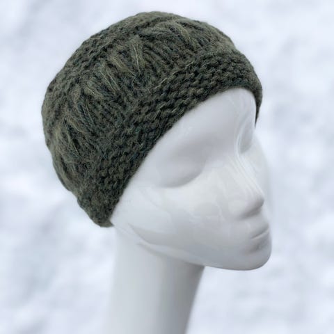 Mykt, behagelig pannebånd, håndstrikket i godt garn som inneholder alpakka og ull.