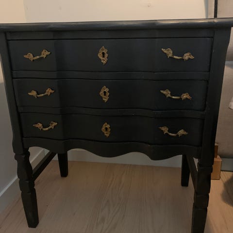 Eik kommode malt i dempet sort .Spil som hører til står til salgs også