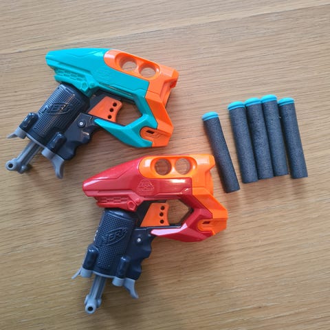 Selger pent brukt 3 stk Nerf pistoler, blink og ca 50 skudd