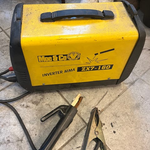 Portabelt invertersveiseapparat som egner seg svært godt for sveising med 1,6-2,5 mm elektroder (rutile/basiske)i tynnere materialer. Sveiseapparatet er luftavkjølt og overopphetingsbeskyttet, og sveisestrømmen kan reguleres trinnløst. Har også noen pinner dere kan få med på kjøpet.