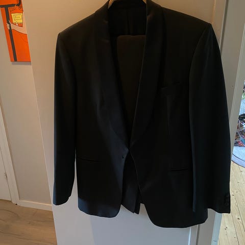 Elegant smoking, fremstår som ny. Passer til høyde 185-190 cm og livvidde 32-34 tommer