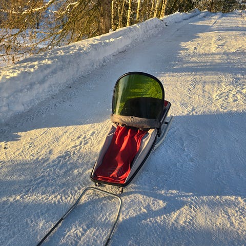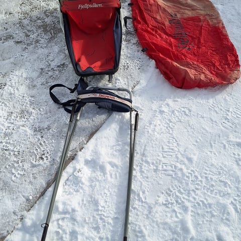 Fjellpulken med dra utstyr.