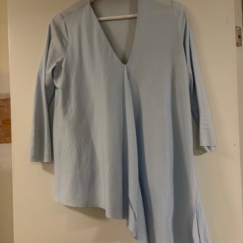 Selger en hvit COS skjorte i størrelse 44. Skjorten har fin innsving i midjen og A-fasong. Litt liten i størrelsen, tilsvarer en L/XL.