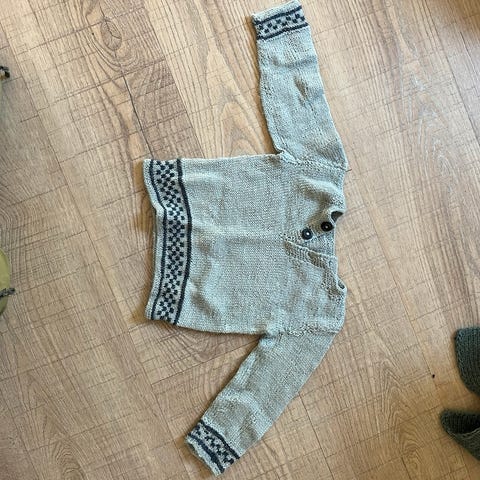 Strikkegenser i brun med perlestrikk.