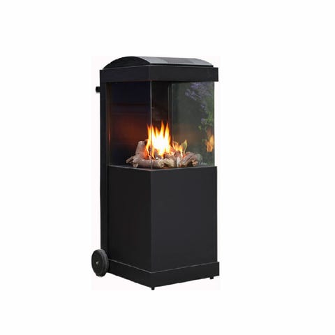 Koselig peisbord med gassflaske som kobles på.