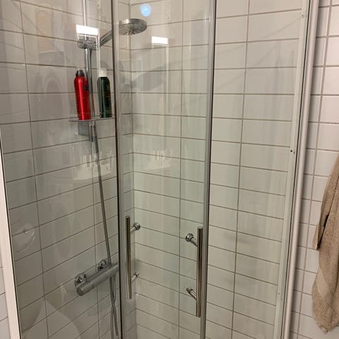 Dusjhjørne i glass med krom ramme