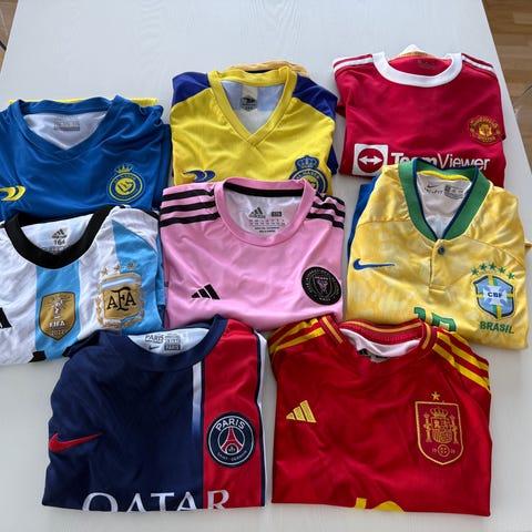 Masse fotballklær selges. Veldig fin tilstand på alt! Her har du så mye bra fotballtøy. 14 shortser, 2 drakter og 5 treningstskjorter. Kan egentlig selge for mer men vil bli kvitt. Bare å spørre! Alt er i 137-147 ck.