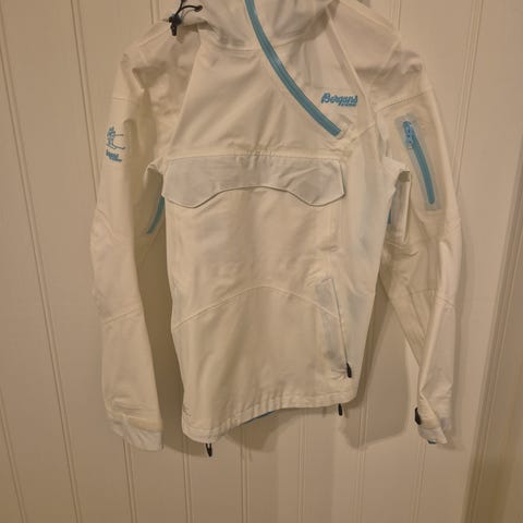 Bergans jakke yttertøy i størrelse S for damer, laget av polyester. Jakken har flere glidelåslommer og hette med justeringsmuligheter. Passer til utendørs bruk og gir beskyttelse mot vær og vind.