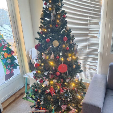 Juletre gis bort mot henting. Pynten følger ikke med.