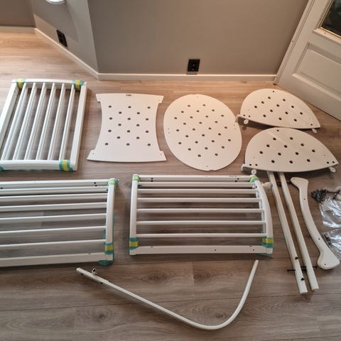 Sengen har låsbare hjul og justerbar høyde. Da vi har lav seng selv har vi valgt å bruke senga uten hjul, dette har også fungert fint. Høyden på den ene langsiden av senga kan justeres.