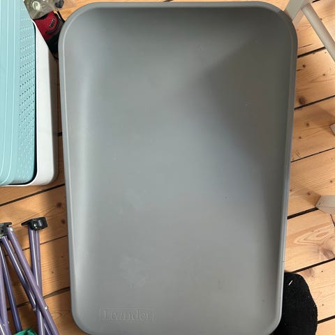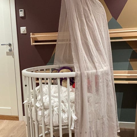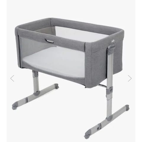 Pent brukt Carena väddö bedside crib i mørkegrå farge selges. Sengen har svært få, knapt synlige bruksmerker, men noe misfarging i bunnen (se bilde).