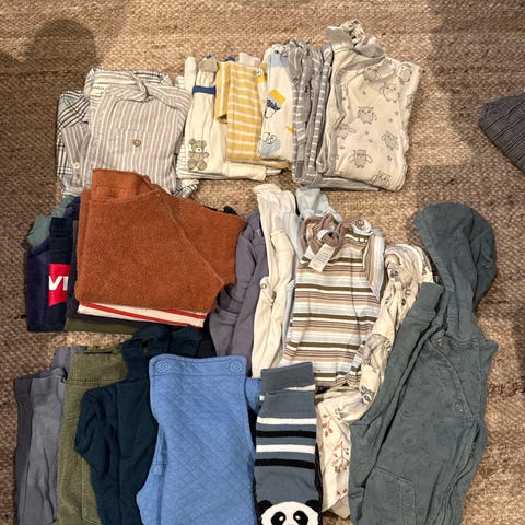 Pent brukte klær i str 86 og noe 80. Bruksmerker på noen av klærne, men ingen hull.