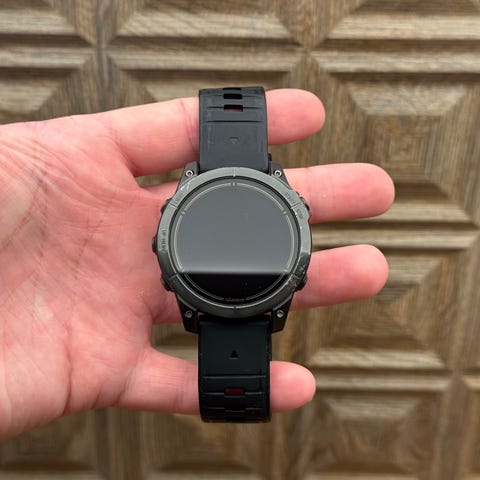 Garmin Fenix 3 smartklokke med stålramme og metallrem. Klokken har en rund skjerm som viser tid og andre funksjoner, egnet for både daglig bruk og sportsaktiviteter.