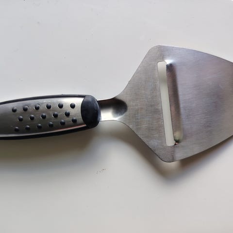 Ca. 32cm Tefal stekespade med hull i sort materiale. Egnet for bruk i kjøkken til matlaging og vendig av matvarer.