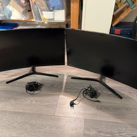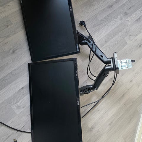 Selger 2 stk AOC e2752Vq skjermer med dobbel skjerm stativ.
