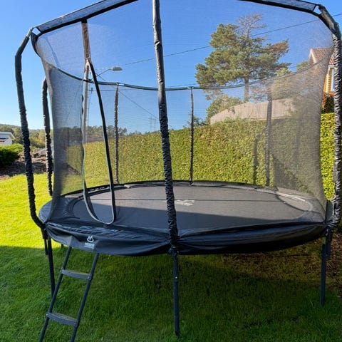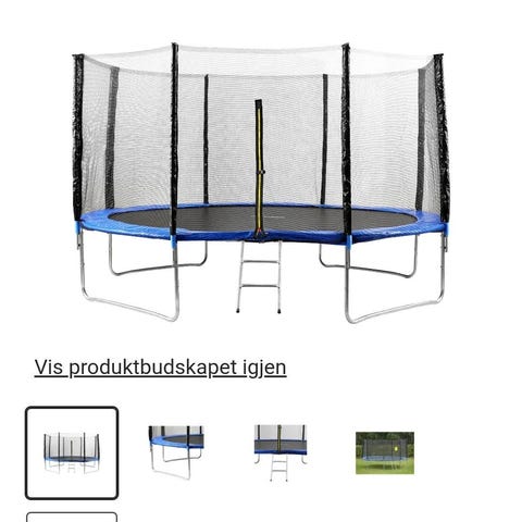 Trampoline av merket north pioneer 430, trampolinen er av god kvalitet. Beskyttelsesmatte ny i fjord. Noe overflaterust samt noen små hull i sikkerhetsnett. Begge deler kan lett fikses. Ellers hel og fin. Følger med 4 stk jordskruer med stropper for å vindsikring.