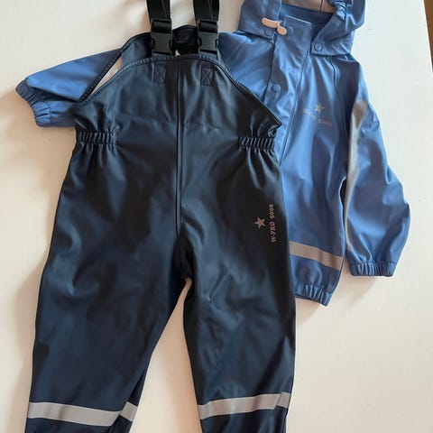 Godt men pent brukt regnsett, litt fargeforandringer men helt og fint i alle lås og sømmer. Litt slitasje på enkelte reflexdetaljer.