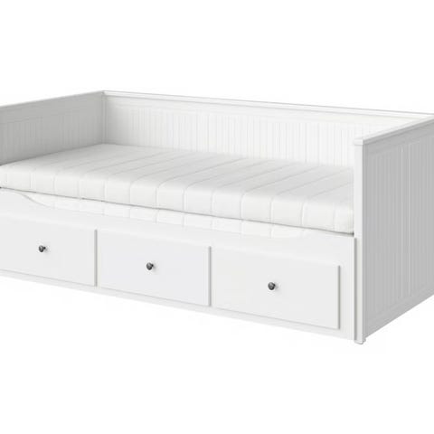 Pent brukt utfoldbar Hemnes seng med oppbevaring fra IKEA. Passer til madrasser på 80x200cm. Se målskisse som bilde i annonsen.