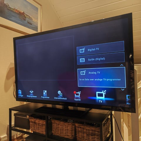 Selger 60t tv ikke noe problem med den kun en bitten som falt av kan lime den. Man ser den ikke når tv står inntil veggen derfor selger jeg den til den prisen 2000