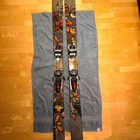 Selger mine Atomic Bent 110. Skiene er brukt rundt 2 sesonger. De har en liten overflateskade på tuppen av den ene skien. Selges med binding: Marker Duke PT 12 (mondo str. 28.5). Det er en kombibinding for de som ønsker en solid og god binding som fungerer like godt i bakken som ute på tur. Feller av typen G3.
