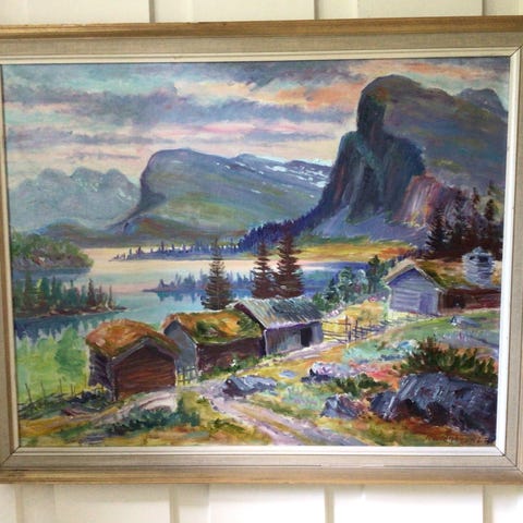 Pent brukt,ingen skader.Er nok 60 år.Har vert i familien så lenge jeg kan huske.Står treskjæring Arne Helland bak.Er nok solgt I Peder Hellands møbelbutikk på Bryne.