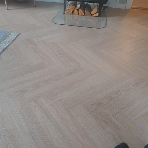 Overskudd Berry Alloc Chateau + Bloom Sand Natural. Brukt for å legge fiskeben. Overskuddet er uåpnet.