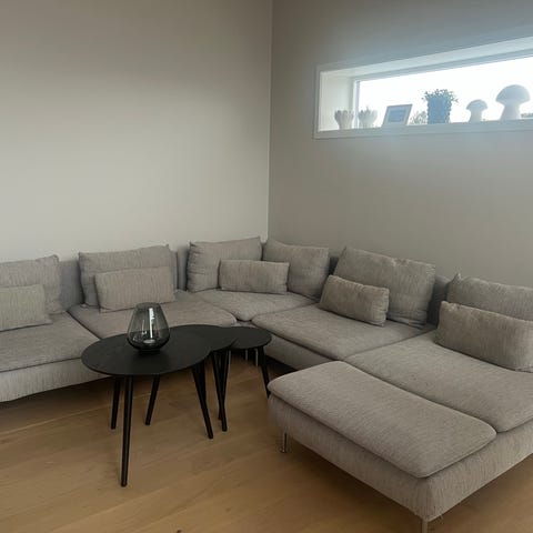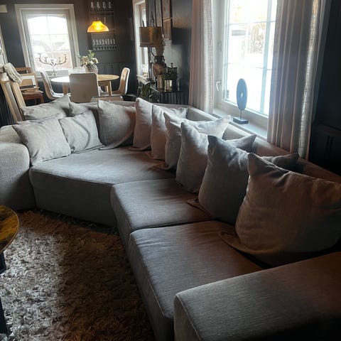 Pent brukt sőderhamn sofa kjøpt ny i 2022 for 16000 kr. Selges pga flytting og oppussing. Veldig komfortabel og deilig sofa! Et par merker på sofaen (se bilder), men kan nok fint vaskes. Hvis ønskelig kan jeg vaske alle trekkene men da øker prisen litt. Er ellers ren og fin.