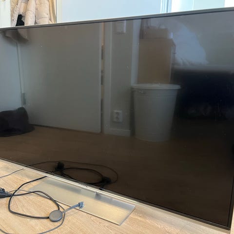 Den ble kjøpt på Finn for rundt to år siden og fungerer stadig utmerket, men jeg vet ikke hvor mange tommer den er. Ut fra målene antar jeg at den er 55 tommer.