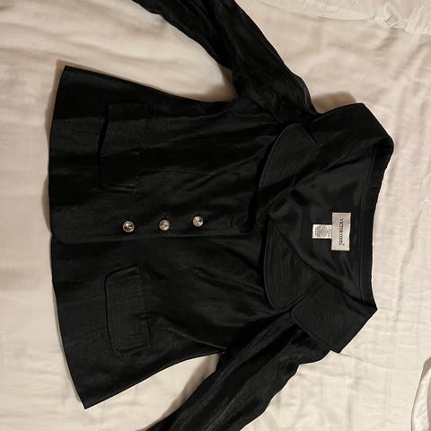 Luksuriøs, tung kvalitet med myk semsket overflate og dramatisk krage.