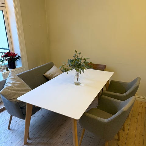 Kjøpt nytt for 2199kr per stol (totalt 10194kr) fra Skeidar.