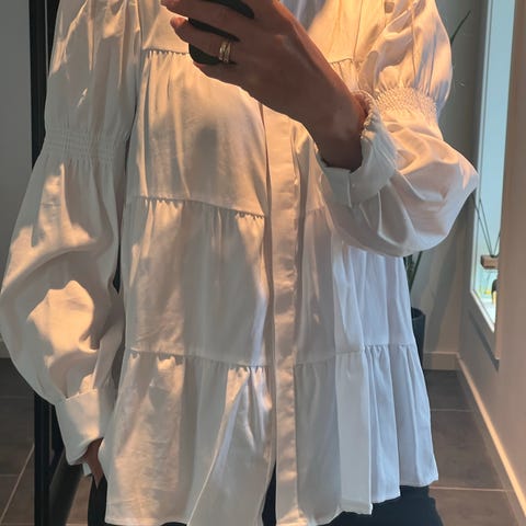 Nydelig hvit bluse fra Levete Room med vakre broderidetaljer. Klassisk og feminin modell, perfekt til både hverdag og pent.