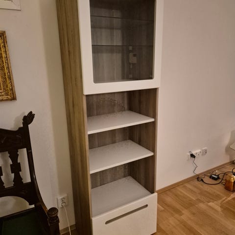 Denne mangler glass i nederste del og det er treplate istedenfor glassplate nederst.