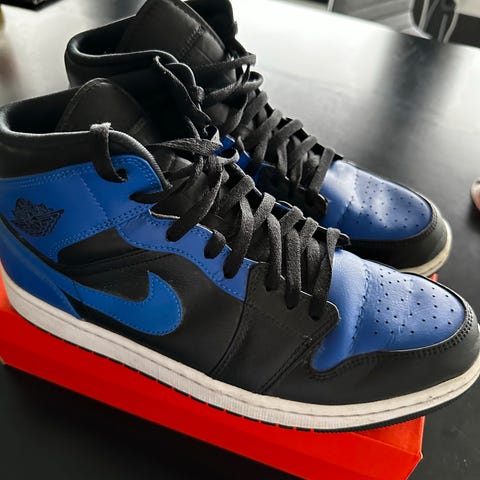 Dette er et par air Jordan 1 mid. Dette er i typen gortex edition som er vanntette, og helt perfekt for barn/voksne som ikke liker vanlige kjedelige vanntettsko. Du ser at de er godt brukt og et lite merke oppi skoa. Men er helt perfekt for all Slaks vær.