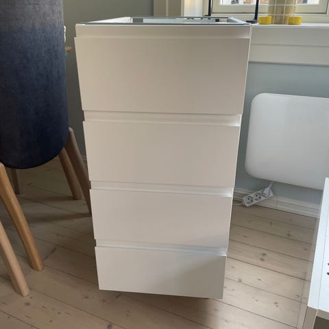 Selger 2 stk Ikea Metod Benkeskapsstamme, i hvit. Du får også med 4 skuffefronter (se siste bilde), men selve skuffene har vi ikke. På bildet ser det ut som at skapet har flekker i bunnen, men dette er aller mest bøss etter å ha stått lagret i en bod. De er brukt, så noen små skavanker er det, men ingen store skader.